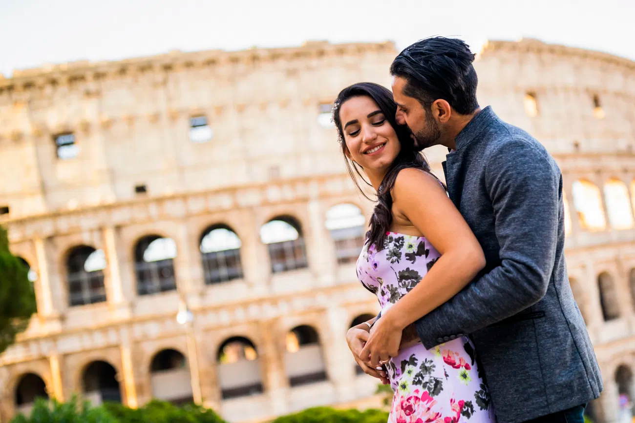 Rome shifts quickly from empty to packed. A sunrise session gives broader streets, softer temperatures, and low-angle light that flatters skin without forcing squints.